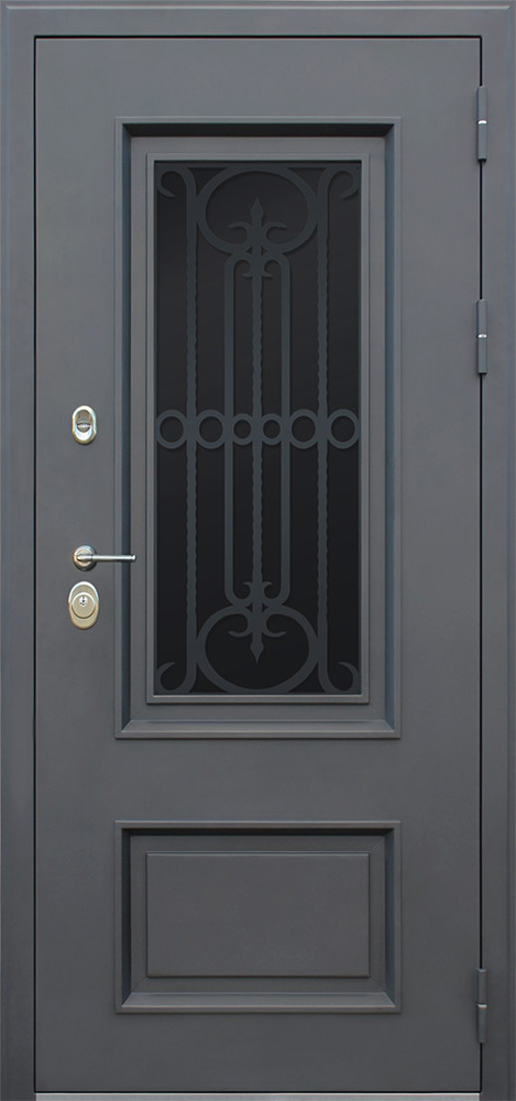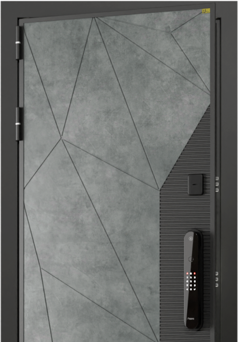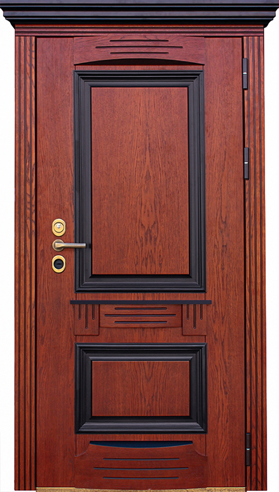 Особенностью данной модели является многослойная конструкция с металлическим каркасом толщиной 1,5 мм, что гарантирует высокий уровень взломостойкости. Экошпонированные панели МДФ толщиной 10 мм с обеих сторон создают эстетически привлекательную поверхность с имитацией натурального дерева, а порошковое покрытие "муар серый" придает двери изысканный внешний вид и защищает от коррозии.